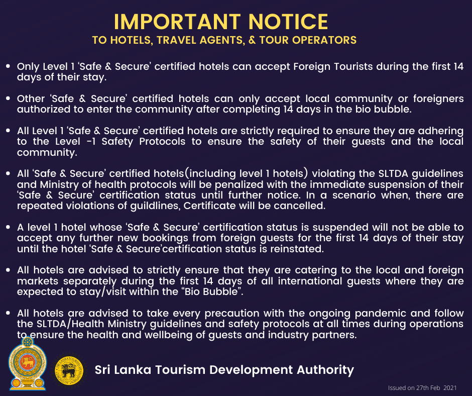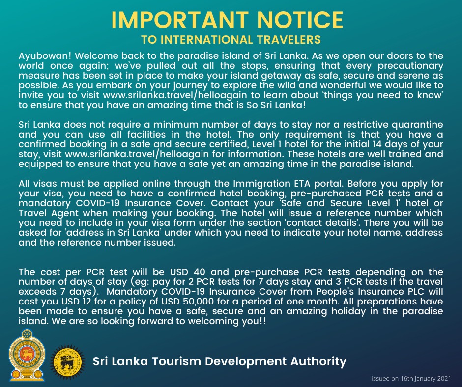 Welcome back to the paradise island of Sri Lanka. As we open our doors to the world once again ; we've pulled out all the stops, ensuring that every precautionary measure has been set in place to make your island getaway as safe, secure and serene as possible. In your preparation to explore the wild and wonderful, we'd like to bring your attention to the 'things you need to know ' for your safety as you make your way to an amazing time that is So Sri Lanka!
